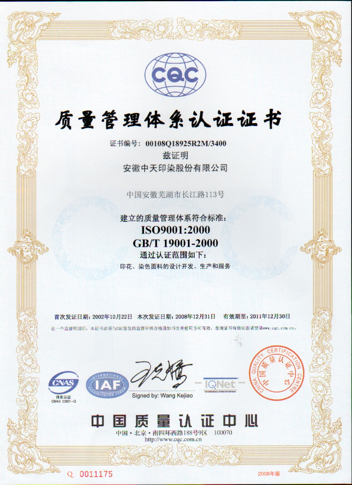 2008年榮獲質(zhì)量管理體系認(rèn)證