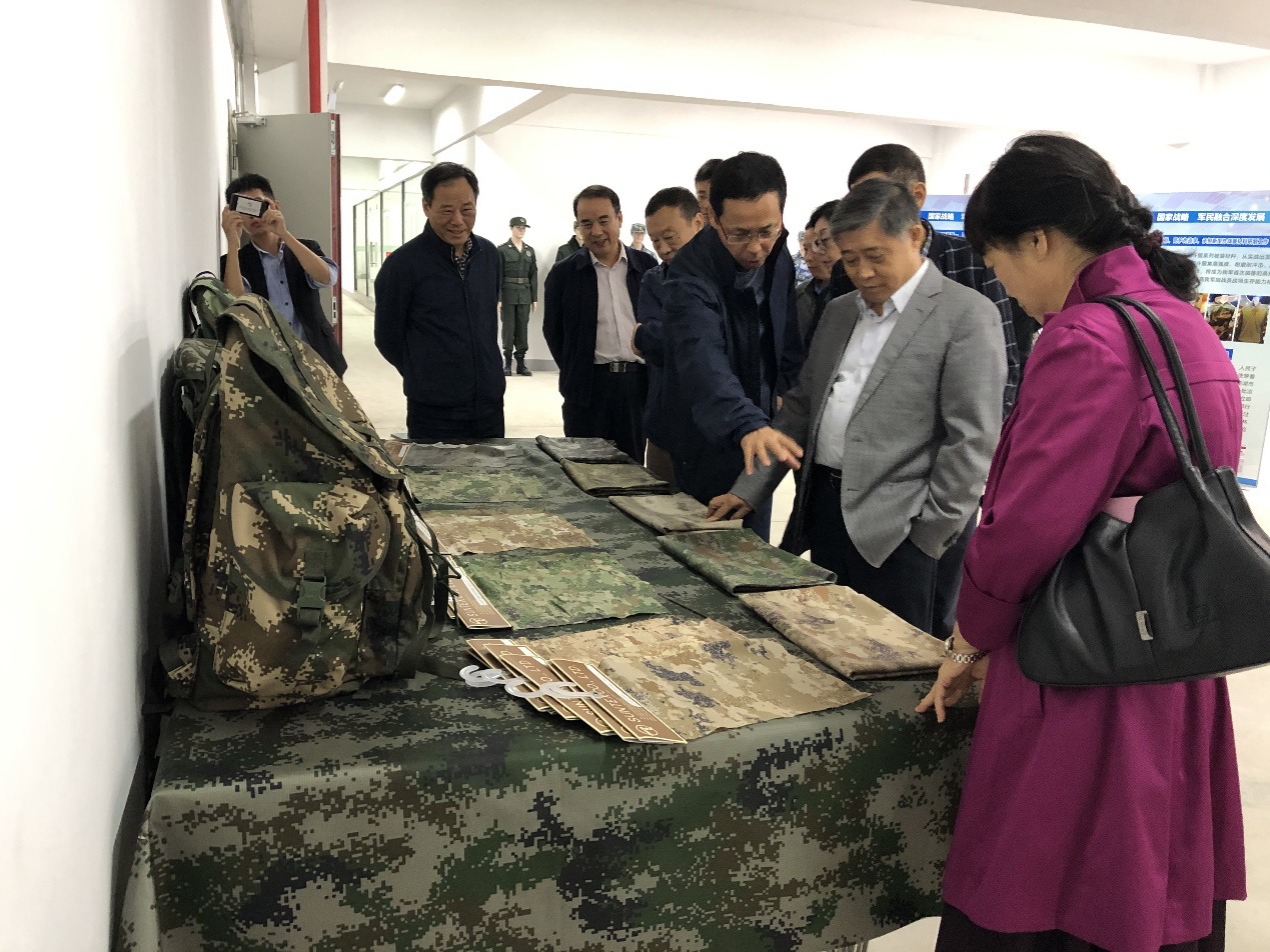 參觀軍用防護(hù)科技新材料時(shí)董事長(zhǎng)洪五林向領(lǐng)導(dǎo)們介紹了公司在此次建國(guó)70周年大閱兵活動(dòng)中參與的新產(chǎn)品新裝備,并就目前國(guó)內(nèi)紡織行業(yè)的研究趨勢(shì)和各類新型材料技術(shù)走向共同做了深入細(xì)致的探討。臧主任、程會(huì)長(zhǎng)對(duì)公司強(qiáng)大的自主研發(fā)優(yōu)勢(shì)、完善的生產(chǎn)規(guī)模給予高度的贊揚(yáng)和關(guān)注。