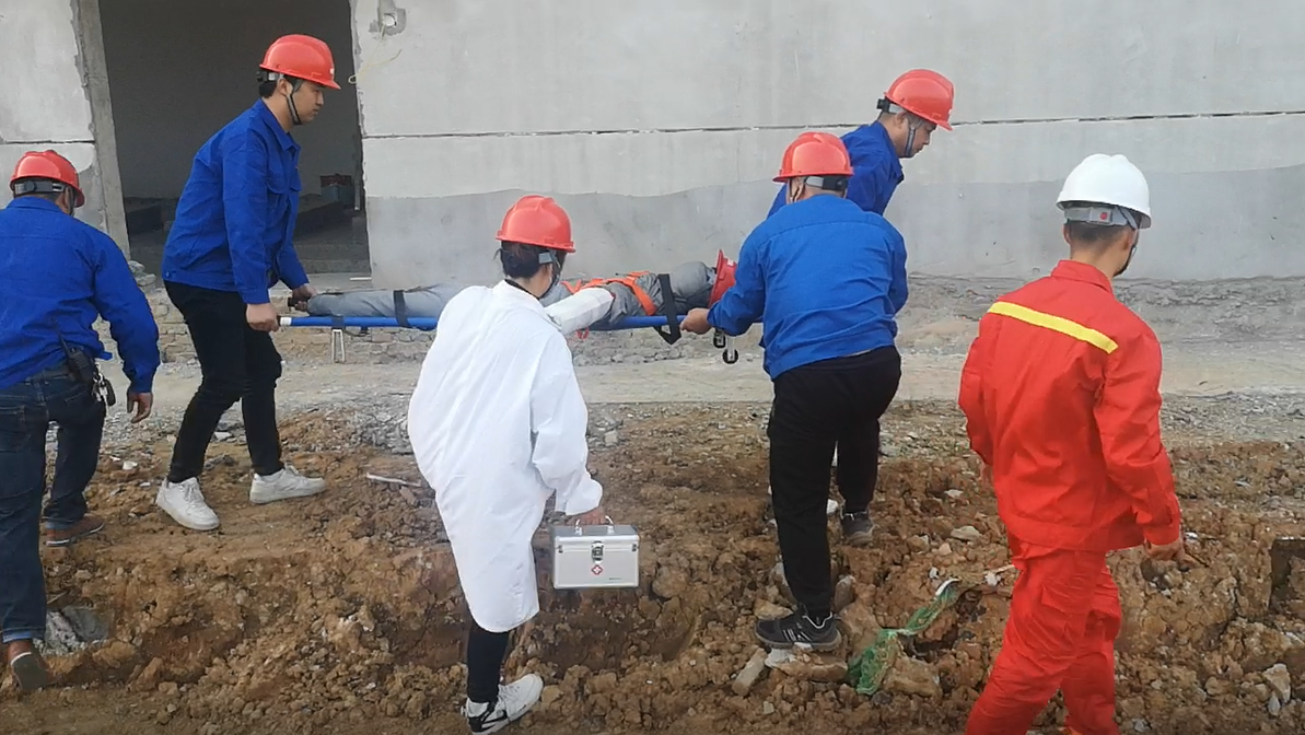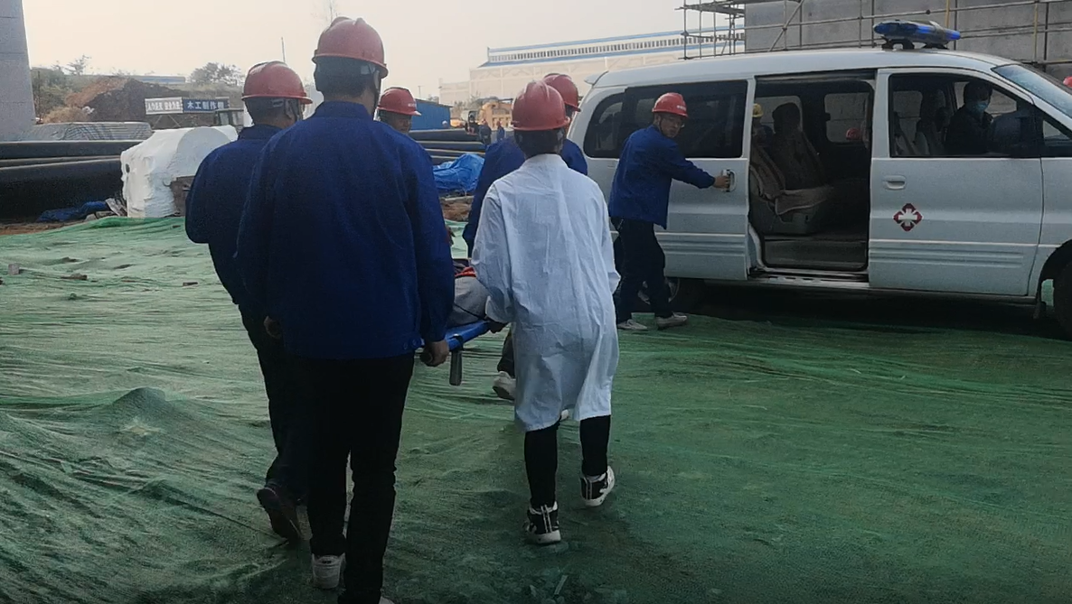此次演練背景為一名工人在高空作業(yè)過程中因未正確固定安全繩從約8米高的作業(yè)平臺不慎墜落至地面,傷情不明。演練現(xiàn)場,事先準備好的演練假人已運至高空作業(yè)平臺,并模擬高空墜落,工人呼救、安全員施工員迅速趕到現(xiàn)場、上報至應(yīng)急小組現(xiàn)場指揮、撥打120急救電話……本次演練科目設(shè)置涵蓋發(fā)現(xiàn)事故、信息報送、前期處置、應(yīng)急響應(yīng)、協(xié)作配合、現(xiàn)場施救、醫(yī)療救護等,完整再現(xiàn)了事故處置的全過程,演練過程環(huán)環(huán)相扣,分工合理,參演人員訓(xùn)練有素、動作規(guī)范、密切配合,演練有序開展。